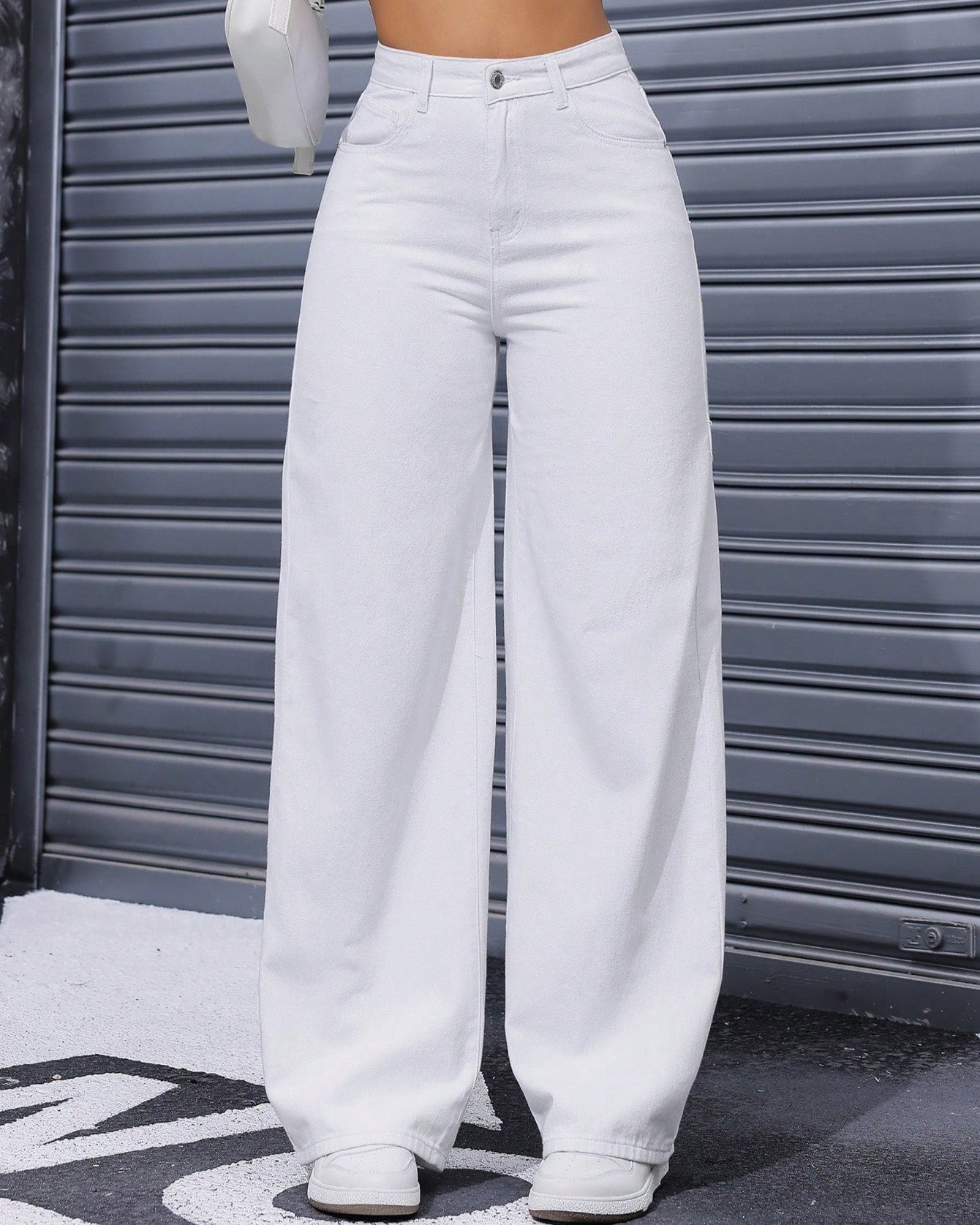 Flvsun-Women Loose Fit Wide Leg Casual Denim Pants With Pockets