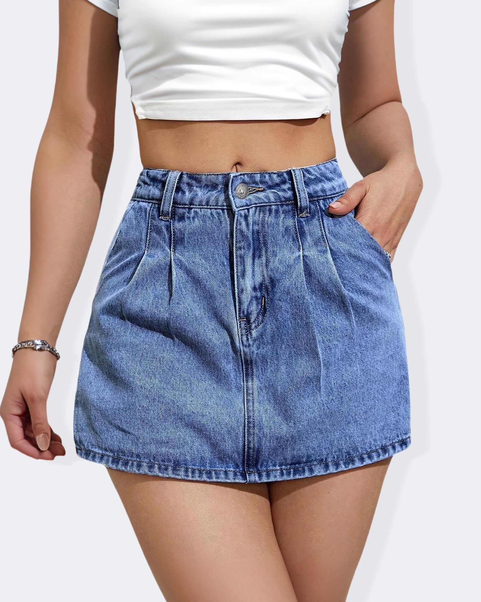Flvsun-Women's Denim Skirt High Waist Casual Denim Skort Women Mini Jean Skirt Shorts Fold Pleated Design