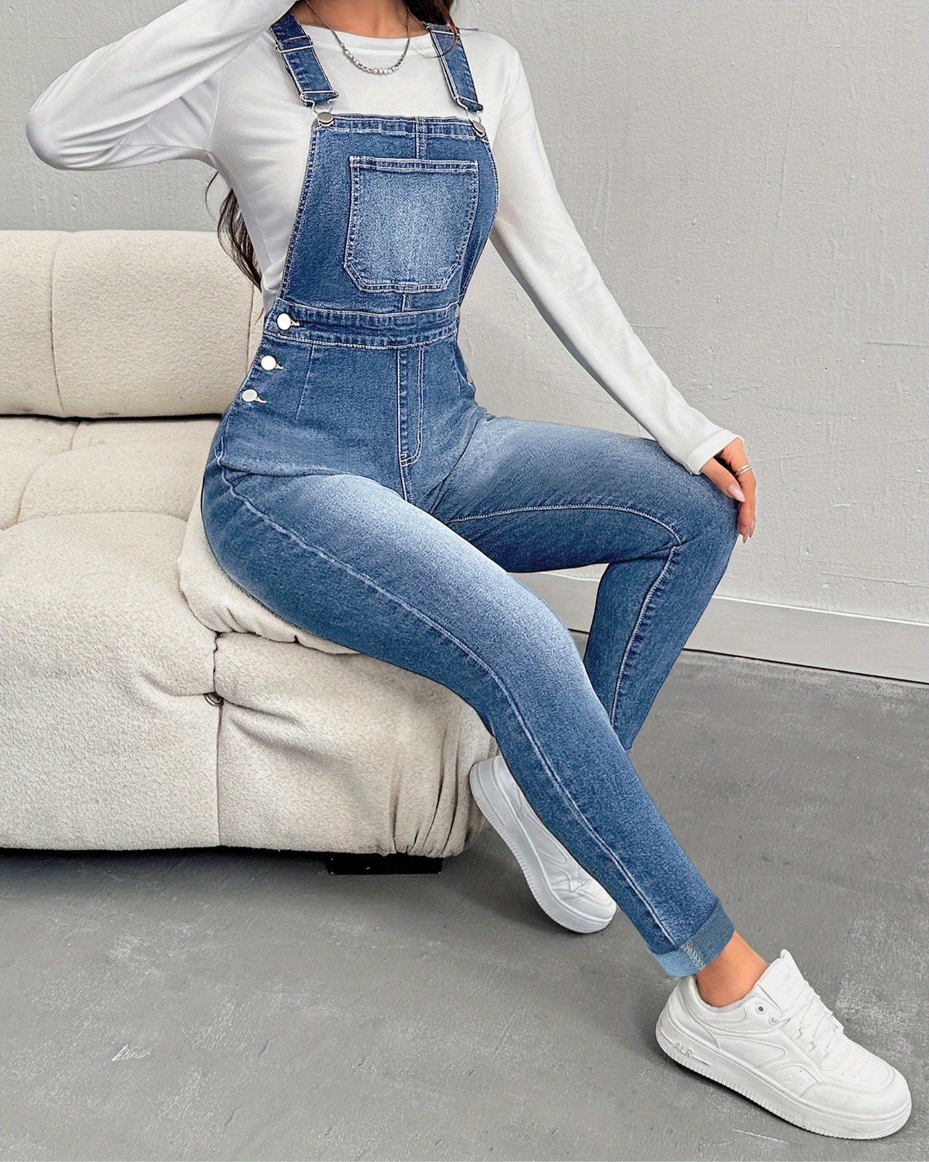 Flvsun-Women's Skinny Back Pants with Adjustable Straps - High-Stretch Denim, Classic Elegant Style