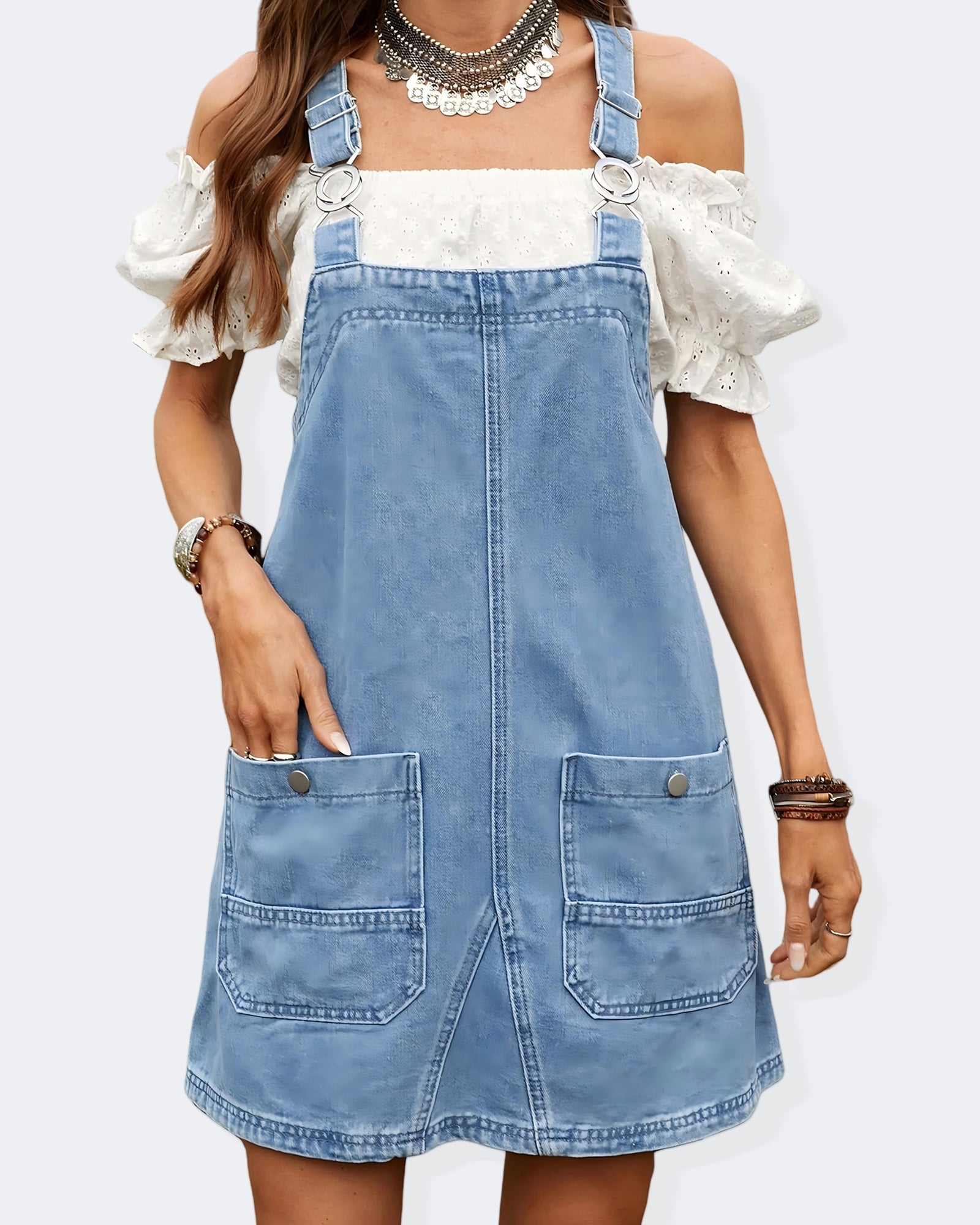 Flvsun-Women's Denim Overall Dress Adjustable Straps Jeans Loose Overall Suspender Skirt with Front Pocket